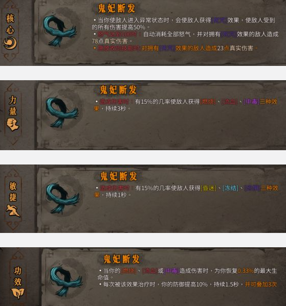 当你使敌人进入异常状态时,会使敌人获得[死咒]效果,使敌人受到的所有伤害提高25/35/50%。