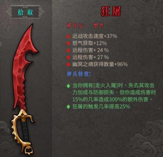 以上就是小编整理带来的暖雪绝世武器狂屠怎么样,暖雪绝世武器狂屠属性,更多相关游戏攻略,请关注手游网!
