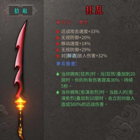 以上就是小编整理带来的暖雪绝世武器狂乱怎么样,暖雪绝世武器狂乱属性,更多相关游戏攻略,请关注手游网!