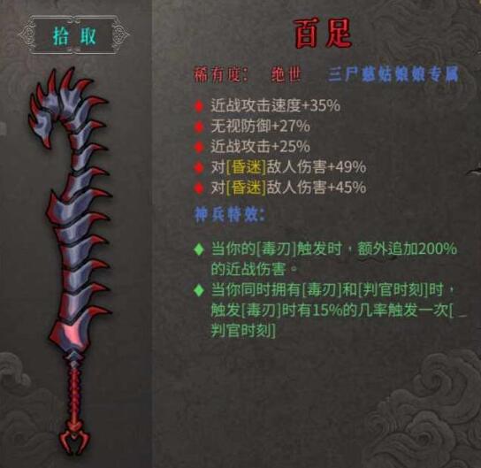 以上就是小编整理带来的暖雪绝世武器百足怎么样,暖雪绝世武器百足属性,更多相关游戏攻略,请关注手游网!