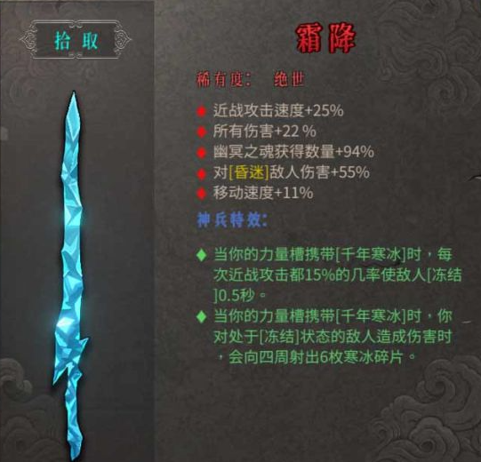以上就是小编整理带来的暖雪绝世武器霜降怎么样,暖雪绝世武器霜降属性,更多相关游戏攻略,请关注手游网!