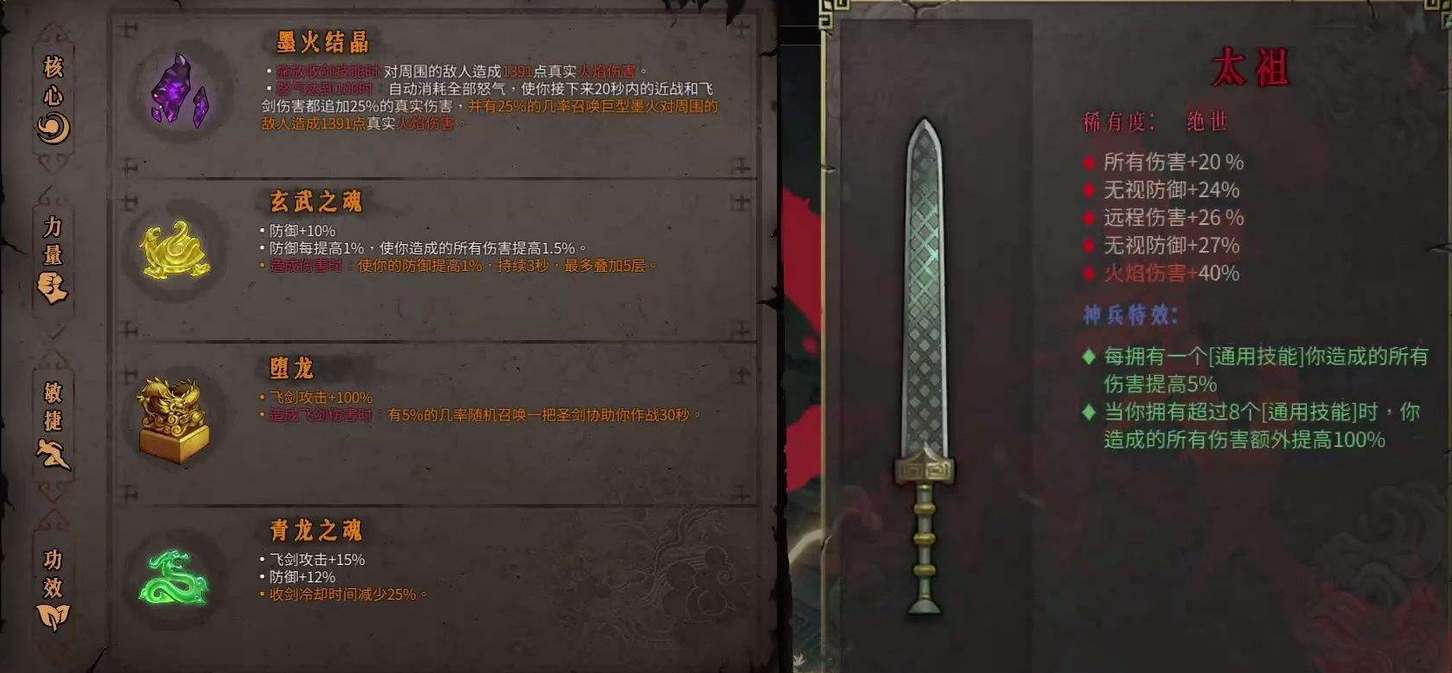 1、1号位墨炎结晶:释放技能会对周围敌人造成火焰真实伤害,怒气值满会直接释放,给飞剑附加伤害提升输出;