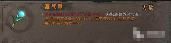 功效凝气草增加玩家的怒气值获得速度。