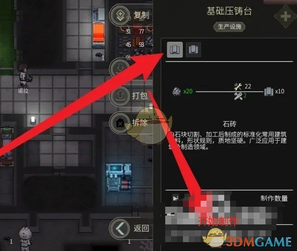 答:在基础压铸台点击石砖,选择制作即可获得石砖道具。