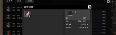 1、第一种就是残疾身体部位的更换方法,角色中如果出现了人物残疾,此时玩家需要点击健康画面,来更换身体的组成部分,而当身体健全则可以实现耐久度的提升,玩家在更换好身体组件后,需要保障身体组件已经进入到了相对应的储蓄位置,此时替换了身体组件的角色,需要一个医务室和医疗设施,并且还需要一位专业医生来对其进行手术,玩家要建立一个低温医疗舱,并且开启心灵强大作用,还可以增加50%的手术成功概率哦。
