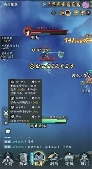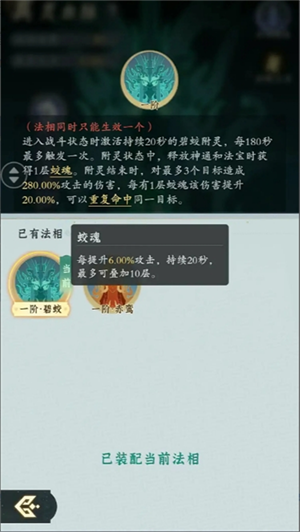 法相对战是开始时召唤一个持续20秒的法相虚影并提供对应的buff加成和伤害。具体效果如下: