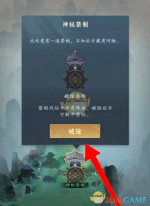 答:前往神秘禁制内,破解阵法后即可破除神秘禁制。