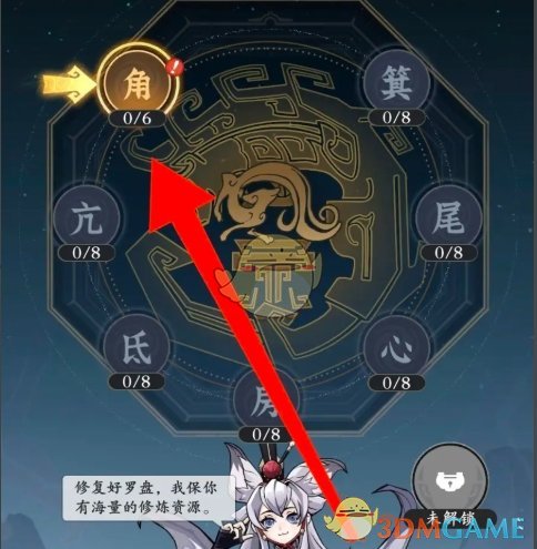 3、接着在神秘罗盘页面,点击可以修复的一角前往;