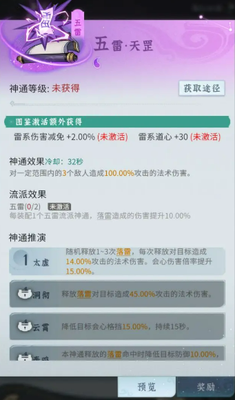 而在前期资源还不多的情况下,大家可以考虑选择一些紫色神通过渡,比如风唤雷和飞电掣。这两招不仅能帮你积累资源,还能通过叠加落雷效果让你在敌人间打出致命一击,一点都不逊色。