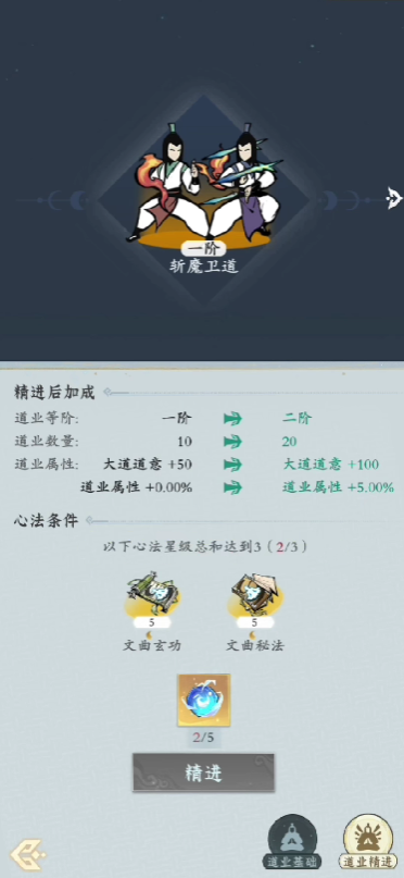 道业精进是需要玩家通过投注道运,来解锁更多丰功伟业的系统,游戏当中的道业精进环节总共有十个,从筑基期开始,玩家就需要重视道业精进的提升了。