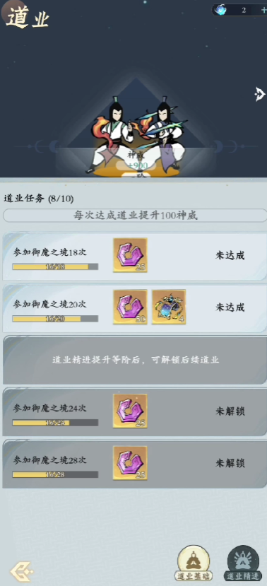道业系统需要消耗玩家大量的道运数值,道运数值在游戏当中获取途径总共有三个,第一个是完成主线剧情内容,当完成某一个大章节的主线剧情时,玩家即可获取道业精进的相关数值,第二种获取道运数值的方式是玩家提升游戏等级,玩家每升级一级,就能够获得一点道运天赋点,天赋点在游戏当中实际上是非常重要的,在二十级之后,玩家每升级五级,才能够获得一点的道运天赋点,固然在前期,玩家每一次的选择都尤为关键。