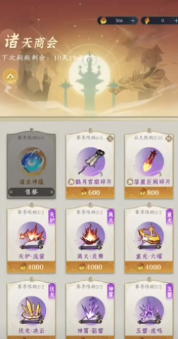 论剑台商店这里就建议优先选择神通,如果有多余的可以选择购买残剑碎片,要是有好感度比较高的道具也可以兑换成石头,要是不缺神通的话,就可以选择飞行法器。