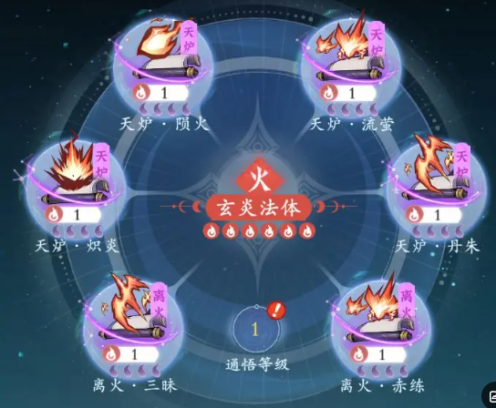 离火·三昧(核心)、离火·赤炼、离火·炎舞、离火·风卷