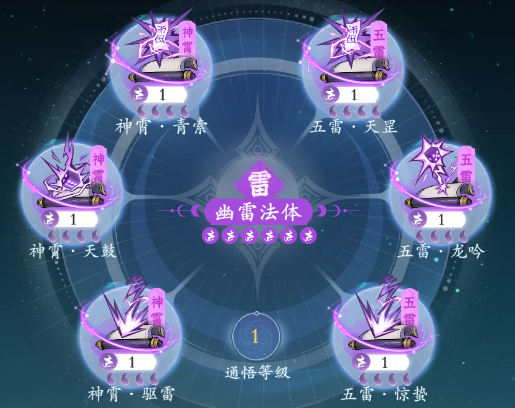五雷·龙吟(核心)、五雷·天罡、五雷·惊蛰、五雷·虎鸣