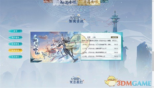 1、官网分为五个大板块,分别是:首页、预约福利、游戏特色、新闻资讯、关注我们;