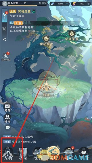 1、首先我们进入游戏主页,点击左下角的人物功能;