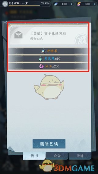 7、最后在邮件内,点击一键领取即可获得兑换码自带的奖励;