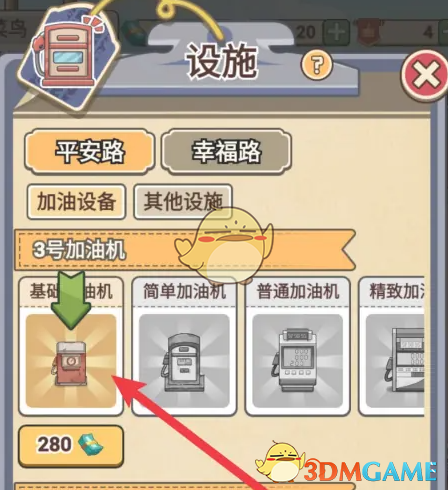 2、打开设施功能,在平安路的加油设备下方3号加油机即可看到基础加油机。