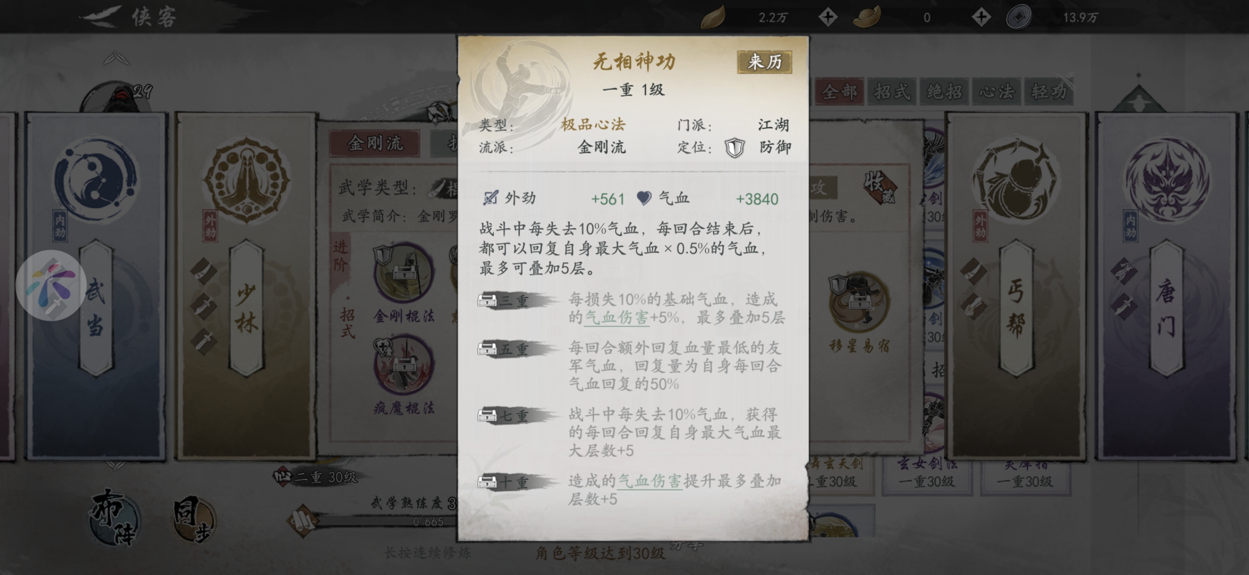 最无脑的门派,依靠自身血量上限打输出,本身又肉的离谱,再搭配无相神功,越挨揍输出越高,同时回复能力越强,良性循环。