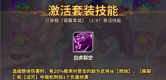 套装名称:银翼套装,虎啸云弓+虎啸霜铠+虎啸星冕+虎啸风履,那么这套套装的具体效果是什么呢,很多玩家还并不了解,那么接下来就由小编带大家具体了解一下吧。