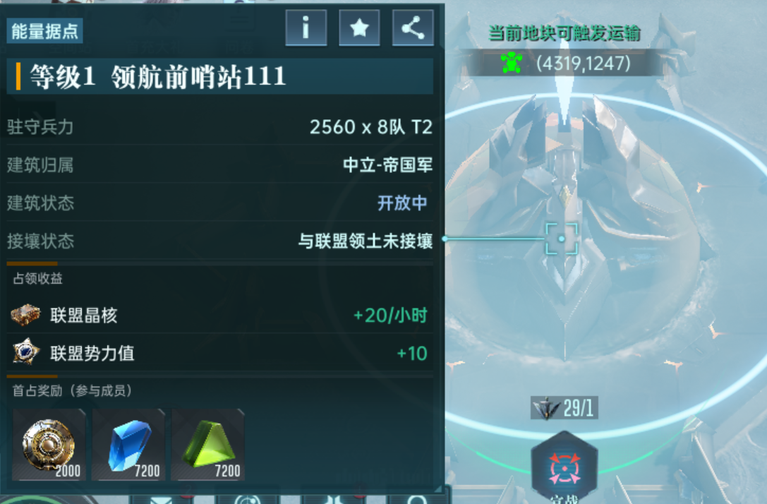 攻占地图上较核心的区域,将其变为联盟领土,同时攻占枢纽能提供更多的一次性奖励和大量持续加成