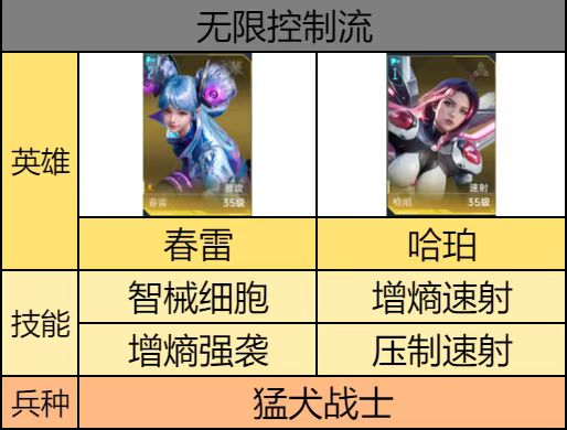 该阵容两个英雄技能都是概率触发黑障控制效果相互联动配合受到控制后增强技能最大化提升伤害,战斗中使敌人先手控制快速压制打出血量差,定位为输出队伍。