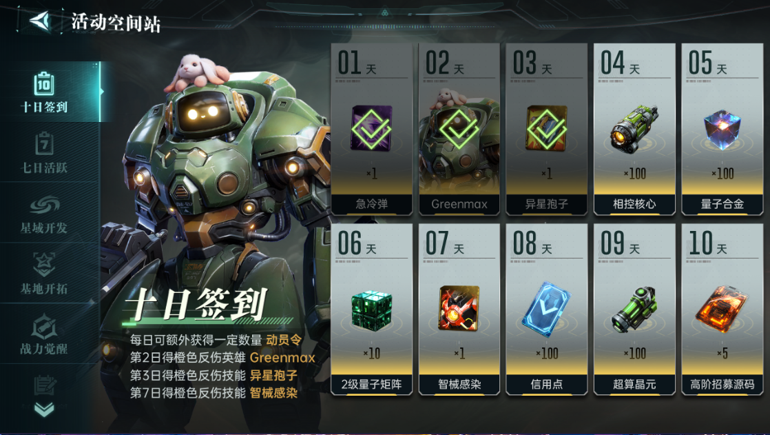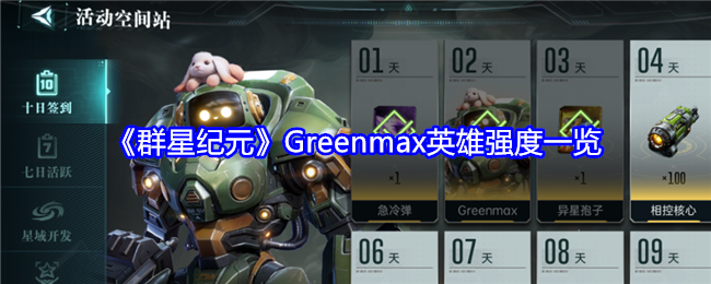 群星纪元Greenmax英雄是有机会免费获得的,大家参与签到活动,在第二天就能领取到了!这是一个强力金色反伤英雄。下面是小编给大家带来的《群星纪元》Greenmax英雄强度一览,感兴趣的小伙伴们一起来看看吧。