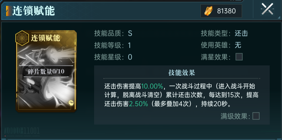 满级效果:伤害系数提升至60.00%,还击伤害显著提高,控制效果依旧稳健。