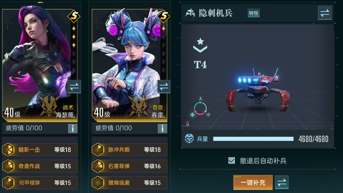 隐刺机兵拥有全兵种中最快的攻击速度,同样可以通过更频繁地触发技能效果来提升队伍伤害。