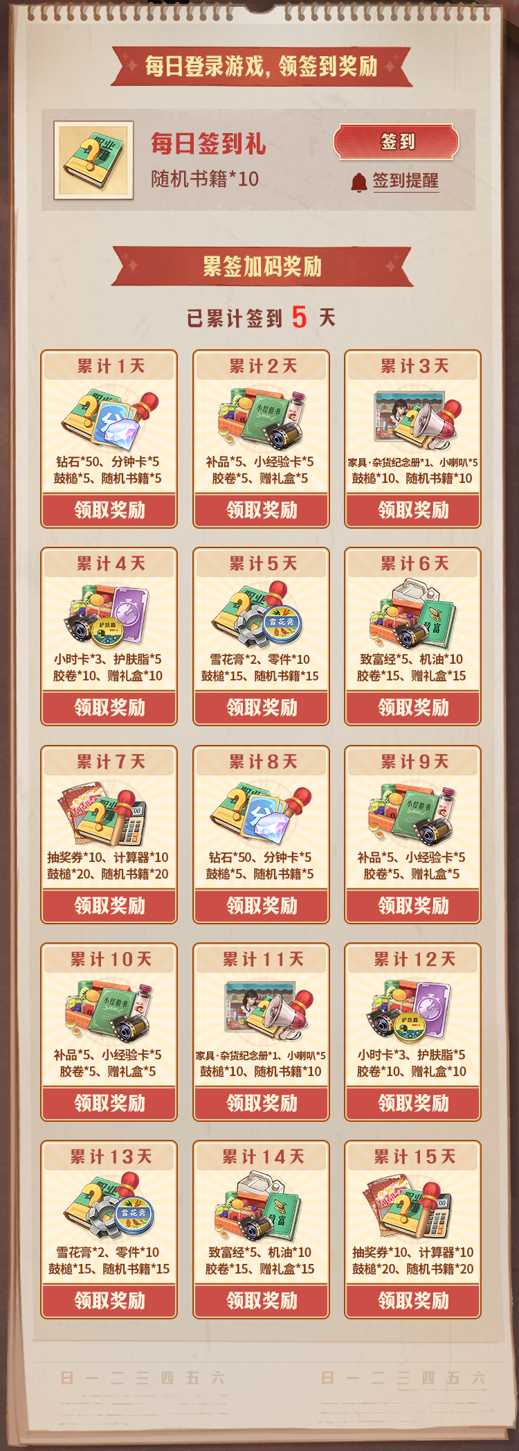 8月1日起,前往《时光杂货店》专属活动小程序-时光活动完成每日签到,即可领取海量养成资源,开店路上不用愁!