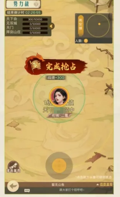 势力比拼每天晚上8点到9点开战。四大势力各自有4个职位,排名第一的老板当领袖,领袖再指定一个副官,然后在大地图上标记据点,带着势力里的玩家去占地打架。积分分两种,个人积分靠击杀对手和占领据点,势力积分,靠持续维持据点归属。先到积分上限的势力赢,时间到了没人到上限,就按当时积分结算。