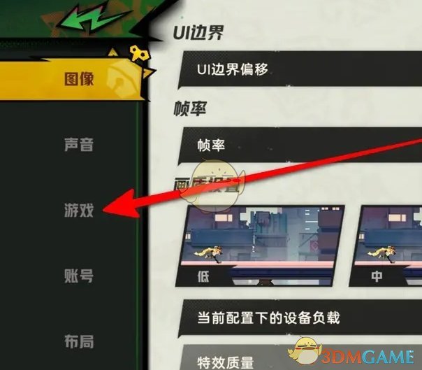 2、进入设置页面后,点击左侧菜单栏中的游戏选项;
