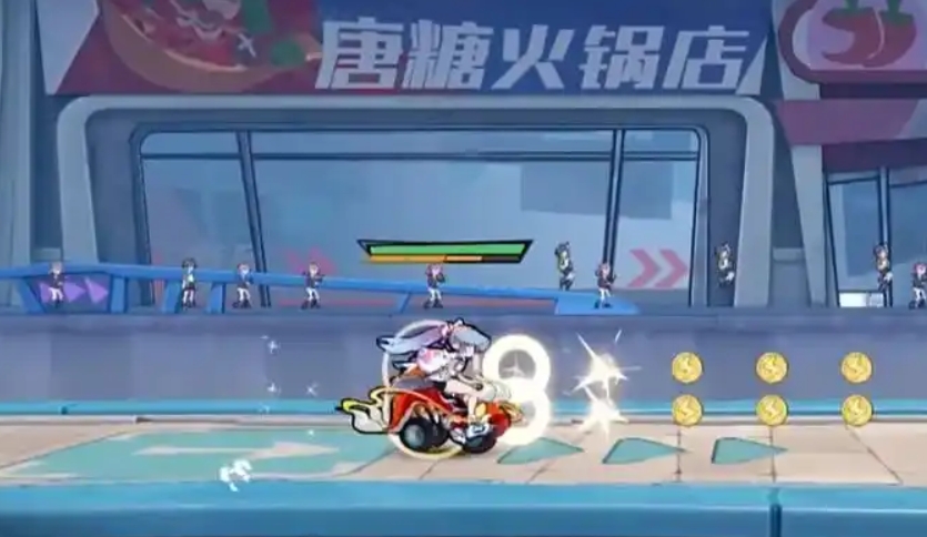 在这个关卡中,玩家需要熟练掌握跳跃、滑铲、冲刺等基本操作来应对场景中的各种挑战,及时跳跃可以帮助玩家越过地面上的障碍物。在火锅城中,玩家往往需要跳跃到高处的台子或是别的建筑物上,甚至有时候还需要跳跃躲避天空中飘来的火锅调料或热气球。滑铲不仅可以让玩家快速通过狭窄的通道,还能在火锅摊前使用以获得加速效果。刺可以在短时间内获得极高的速度,这对于在短时间内穿越长距离地带非常有用。