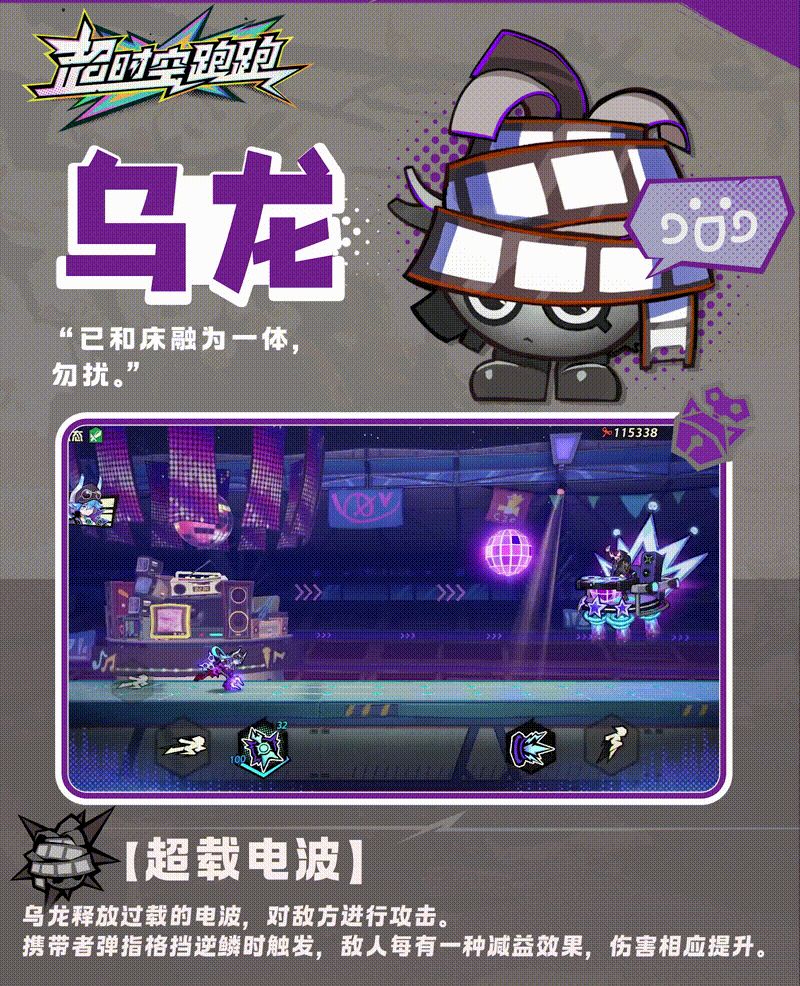 菜头的攻击是菜叶扑扑,背景定义是一个在菜地勤劳耕地的小“上海青”,在小队成员弹指技能格挡逆鳞的时候就会挺身而出,跳跃的出场用自己头上的菜叶进行攻击,可以降低敌人对乙方的伤害,并且提高敌方自己收到的伤害,小队所有成员都能触发,菜头可一点都不菜哦;乌龙比较神出鬼没爱好看电影睡觉,但是它的技能超载电波伤害可以,不过只有携带者才能触发,对敌人可以减益,这俩个都适合给小队加强伤害。