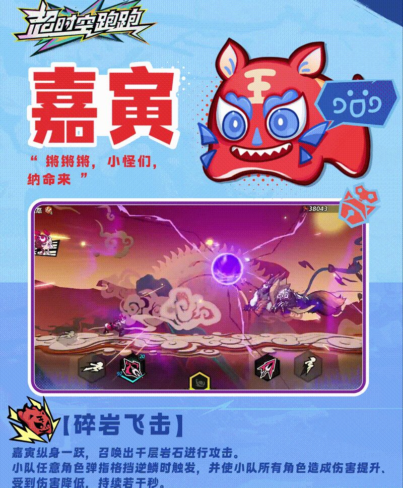 嘉寅一只小布老虎,技能是碎岩飞击,从小队里面跳出来可以召唤很多岩石刺在地上,并且去降低大家收到的伤害,所有角色的伤害都能提升,可持续一段时间,这个精灵大多数小团队都适用,所有角色都可触发,针不戳的尖刺可以攻击敌人,技能是狂针飞舞,范围伤害,追光小队所有人都能激出爆发的效果,可持续十秒钟,后遗症是后面十秒小队人员的伤害会降低,所以大家弹指技能要考虑好使用。这俩个精灵几乎所有团队通用的。