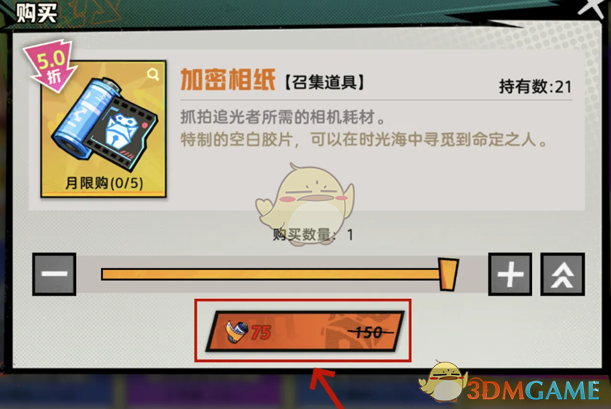 3、在购买页面,消耗货币,点击下方的购买即可获得加密相纸。