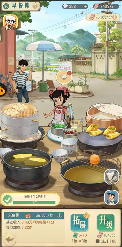 前期店铺的养成对收入提升非常大,因此越早解锁店铺和升级店铺对赚速提升越快。