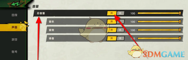 3、最后在声音功能内,点击总音量右侧的开关,选择开启即可。