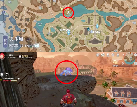 第四个位点,需要大家前往联合学院的右侧方向,玩家需要通过一条大路前往河道附近,大体在天斗城居民区的西北方向,在此处的地图上也有一个卷轴标识,抵达后就可自动解锁风笑天的回忆。