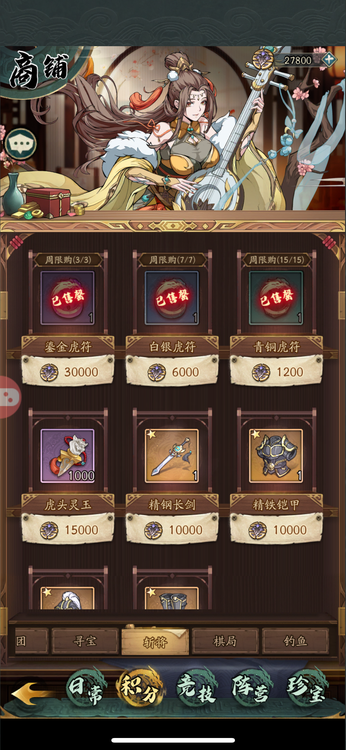 斩将商店这里,优先换虎符,正常打斩将每周的虎符都能换满,多余的币也不要换成虎头玉,都存着,后面虎符弹珠会有对应活动,虎符优先提升主c,主c有两个红符后再适当换虎头玉洗虎符