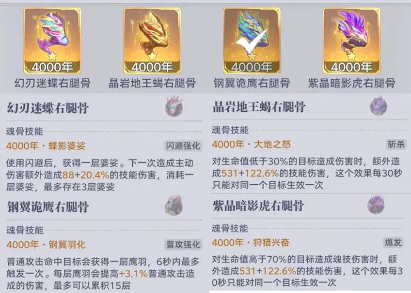 首先这个魂骨祈愿说白了,就是在6个可佩戴魂骨的位置上,分别针对左臂、右臂、左腿和右腿4个部位进行自选祈愿,祈愿的4个魂骨就有更大的几率掉落,所以接下来咱们就来分析一番这4个位置的可祈愿魂骨都有什么特点,那么到底哪一个又是较为合适的呢?