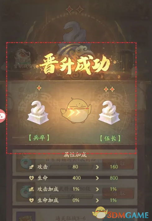 3、符合晋升条件的武将即可完成官职晋升,如从兵卒晋升为伍长,各方面属性加成都会有所提升。