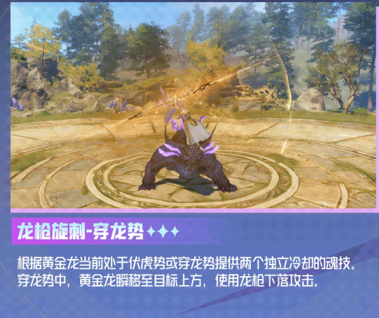 二魂环提供差异化魂技:伏虎势下激活「龙枪旋刺·伏虎势」,表现为后撤+远程投掷,兼顾安全距离输出与站位微调;穿龙势下则变为「龙枪旋刺·穿龙势」,执行突进跃击+下砸,具备强控场与贴身补伤能力。两者冷却独立计算,需严格匹配当前架势使用,错误选择将导致技能失效或收益大幅衰减。