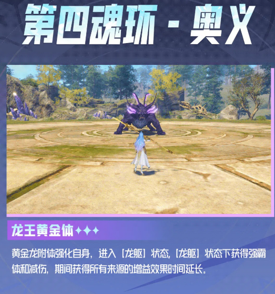 四魂环奥义「龙王黄金体」开启【龙躯】状态,提供多重战术价值:除基础减伤与霸体抗打断外,更关键的是延长所有增益效果持续时间——包括自身技能增益、队友施加的BUFF及被动触发类状态。该机制显著提升整套循环的完整性与时效性,是承上启下的战略级技能,不宜作为纯粹保命手段提前释放。