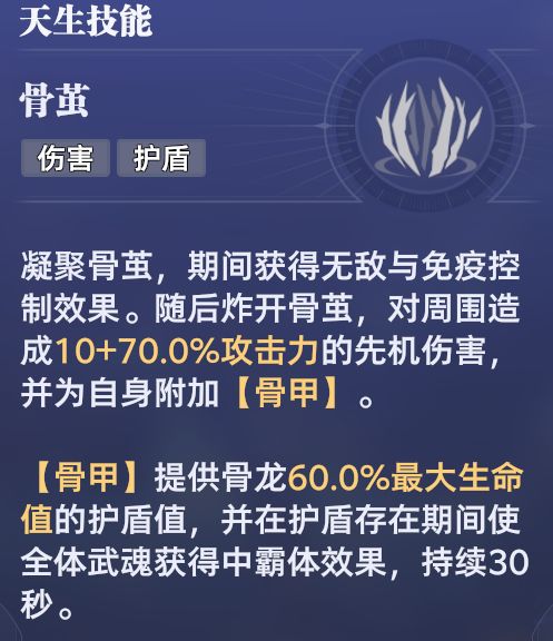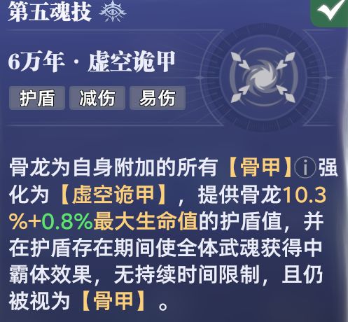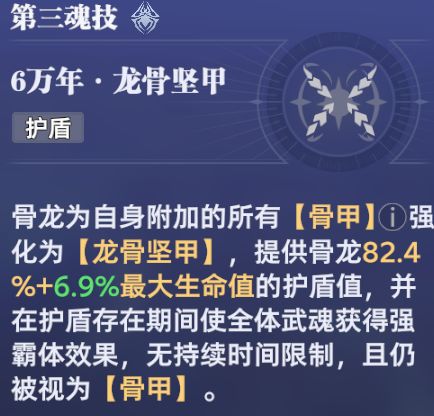 3被动「龙骨坚甲」→骨甲升级为无限持续护盾+强霸体