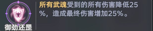 御劲还罡:最终伤害+25%,受到伤害-25%