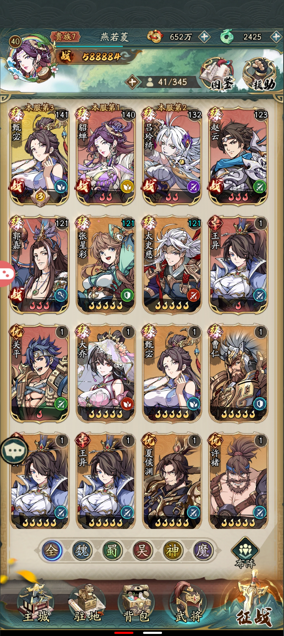 这游戏锁卡池基本是人尽皆知的事,这时候我们还想要有一个好的开局,那就只有一个刷初始的办法了,进入游戏过完新手任务,到7级过后用td888跟xz888两个兑换码外加邮箱里的50个碎片一共150个碎片合成,合出自己想要的就继续玩,不想要就下一个区继续不要浪费时间,继续玩之后抽奖抽出的狗粮都可以分解掉获得将魂用来换取神魔武将,现在能换的神魔武将就两个一个貂蝉一个吕玲绮,优先换貂蝉,貂蝉大招能复活,而且一局没有次数限制