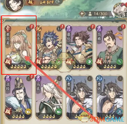 2、在武将图鉴列表中找到卓越属性的黄月英,点击进入武将详情页。
