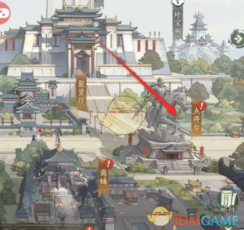 1、首先我们需要打开游戏,在主页面点击主城,选择右侧的点将台进入。