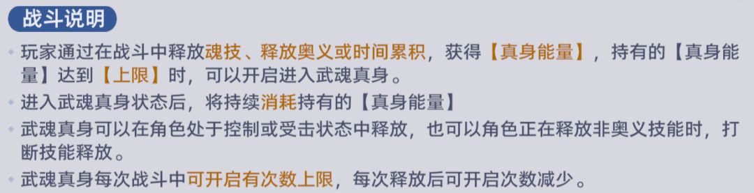 能量获取:通过释放队伍中武魂的魂技+奥义累计能量,满值即可释放。